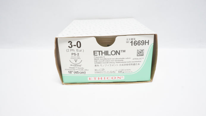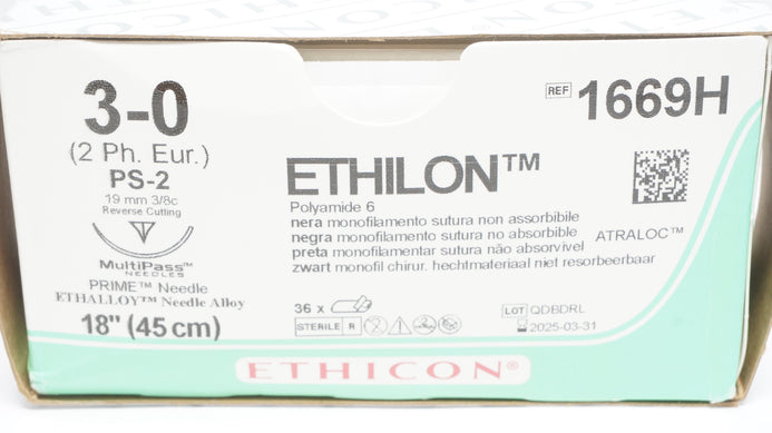 - Ethicon 1669H 3-0 Ethilon PS-2 19mm 3/8c, Reverse Cutting,18inch (x) - Box of 36