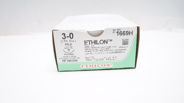 - Ethicon 1669H 3-0 Ethilon Stre PS-2 19mm 3/8c Reverse Cutting 18inch - Box of 30
