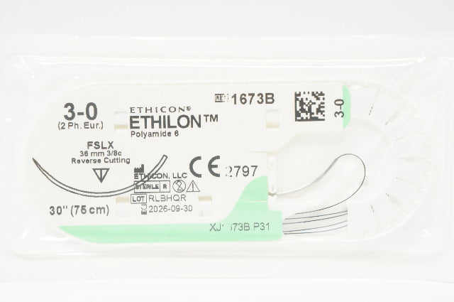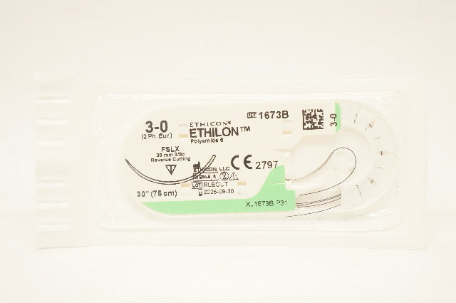 - Ethicon 1673B 3-0 ETHILON Polyamide 6 Stre FSLX 36mm 3/8c Reverse Cutting 30inch