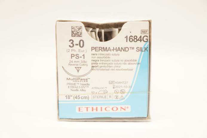 - Ethicon 1684G 3-0 Perma-Hand Stre PS-1 24mm 3/8c Reverse Cutting 18in(x)-Box of12