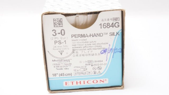 Ethicon 1684G 3-0 Perma-Hand Silk Suture Black Braided PS-1 24mm 3/8c Reverse Cutting 18inch