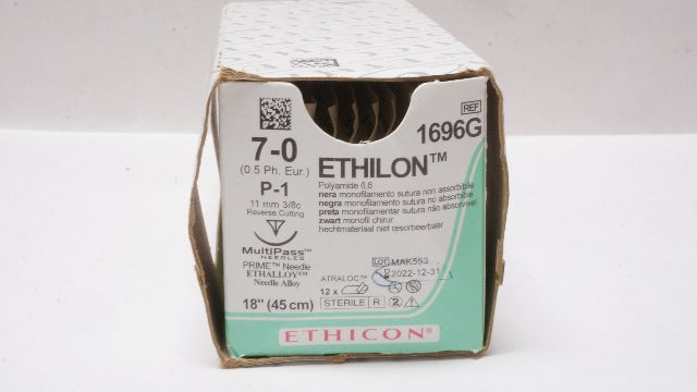Ethicon 1696G 7-0 ETHILON Nylon Stre P-1 11mm 3/8c,18in. (x) - Box of 11