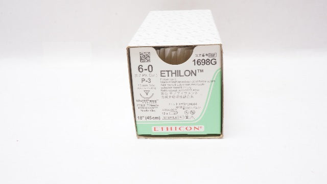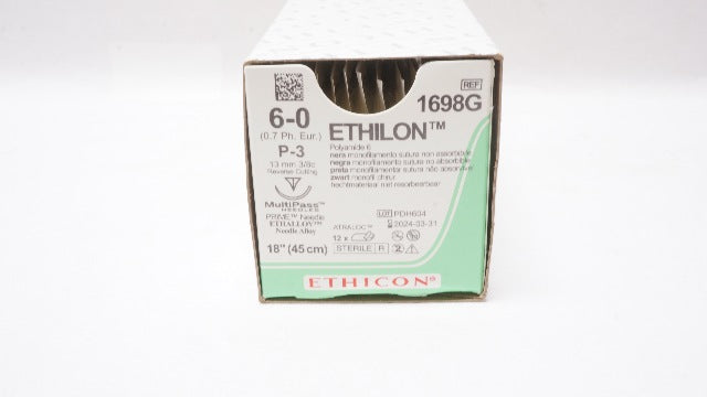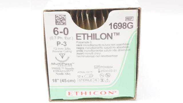- Ethicon 1698G 6-0 ETHILON Stre P-3 13mm 3/8c Reverse Cutting 18inch - Box of 11