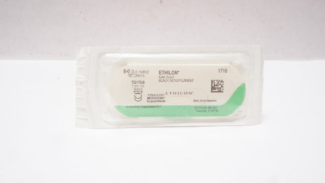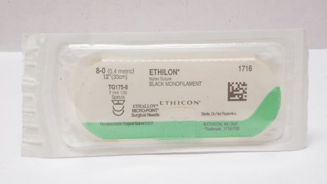 - Ethicon 1716 8-0 ETHILON Nylon Stre TG175-8 7mm 1/2c Spatula, 12inch