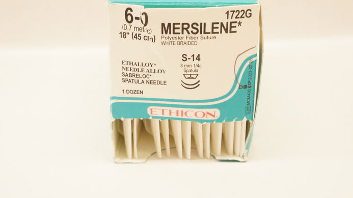 - Ethicon 1722G 6-0 Mersilene Fiber Stre S-14 8mm 1/4c Spatula 18inch(x)-Box of 12
