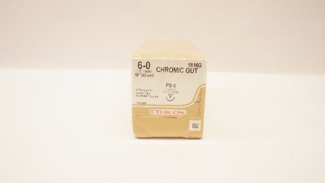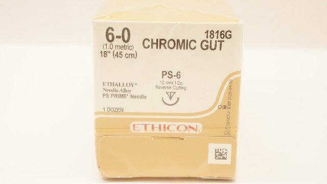 - Ethicon 1816G 6-0 Chromic Gut PS-6 10mm 1/2c, 18inch - Box of 12