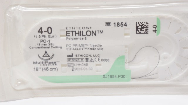 - Ethicon 1854 Ethilonn Polyamide 6 4-0 PC-1 13mm 3/8c Convent, Cutting 18In (x)