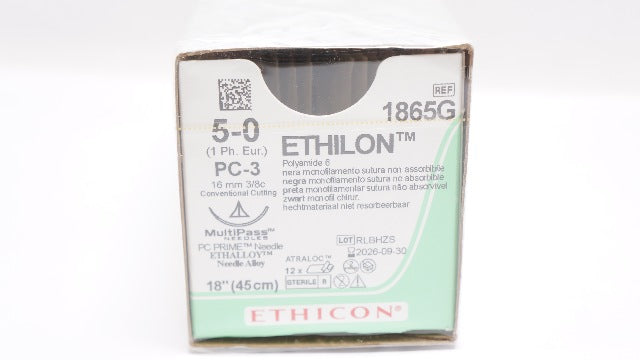 - Ethicon 1865G 5-0 Ethilon PC-3, 16mm 3/8c Conventional Cutting 18inch -Box of 12