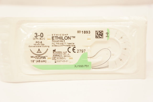 - Ethicon 1893 3-0 ETHILON Stre PC-5 19mm 3/8c Conventional Cutting 18inch