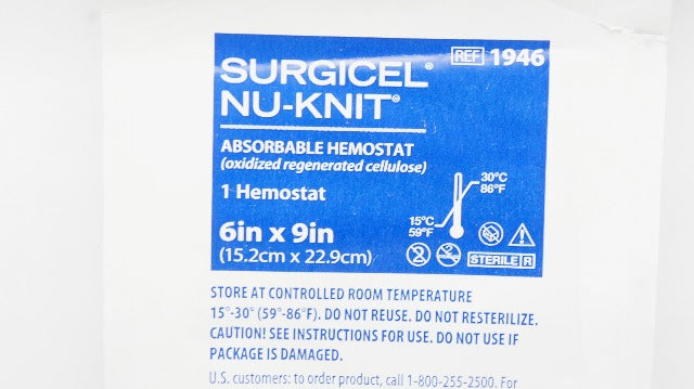- Ethicon 1946 Surgicel Nu-Knit Absorbable Hemostat 6inch x 9inch (x)