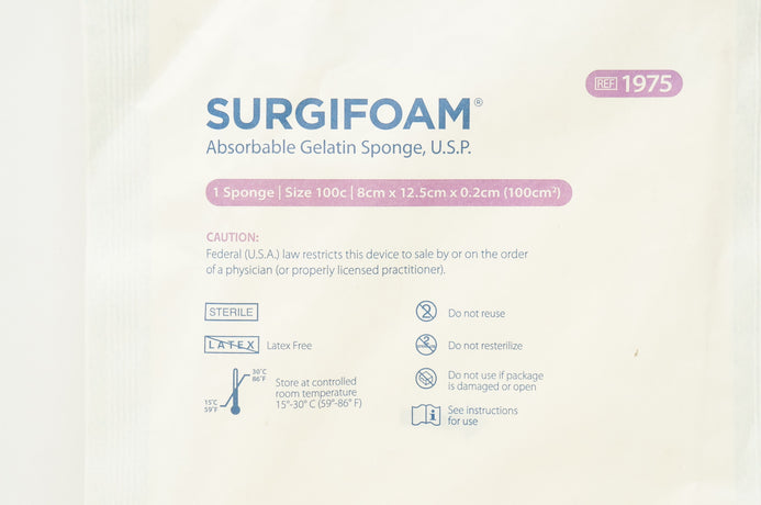 - Ethicon 1975 Surgifoam Absorbable Gelatin Sponge 8 x 12.5 x 0.2cm