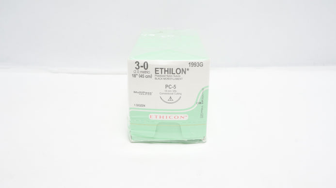 - Ethicon 1993G Ethilon 3-0 Nylon Stre PC-5 19mm 3/8c 18inch (x) - Box of 12