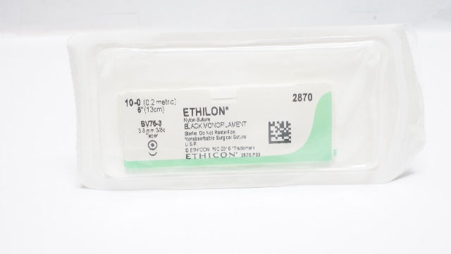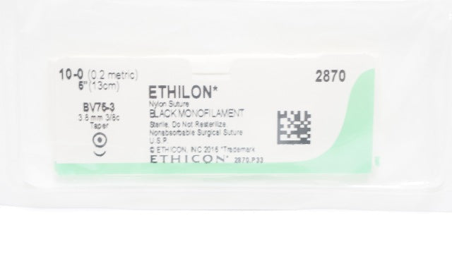 - Ethicon 2870 10-0 Ethilon Nylon Stre BV75-3 3.8mm 3/8c Taper, 5inch (x)