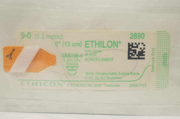 - Ethicon 2890 VAS100-4 Black Monofilament 6 inch 5mm 3/8c Spatula (x)