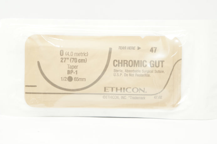 - Ethicon 47 0 Chromic Gut BP-1 65mm 1/2c Taper, 27inch