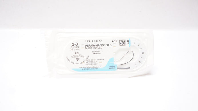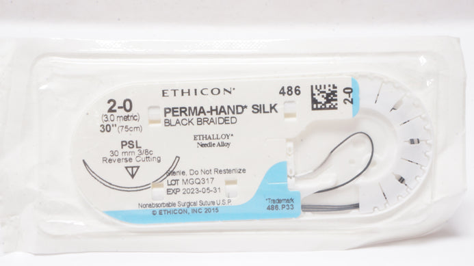 - Ethicon 486 2-0 Perma-Hand Silk, PSL 30mm 3/8c Reverse Cutting, 30inch