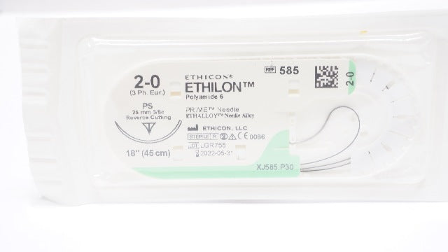 Ethicon 585 2-0 ETHILON Stre PS 26mm 3/8c Reverse Cutting 18inch (x)