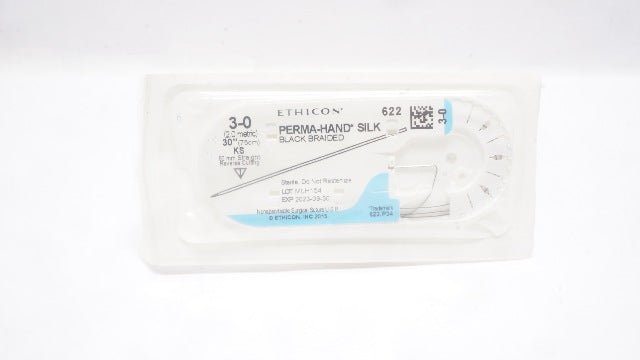- Ethicon 622 3-0 Perma-Hand Silk Stre KS 60mm Straight Reverse Cutting, 30inch(x)