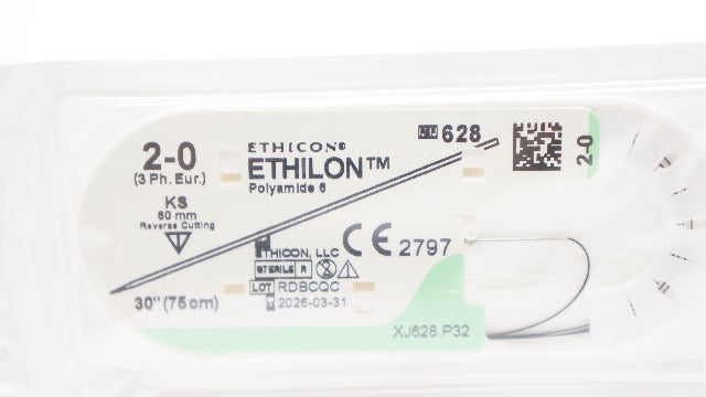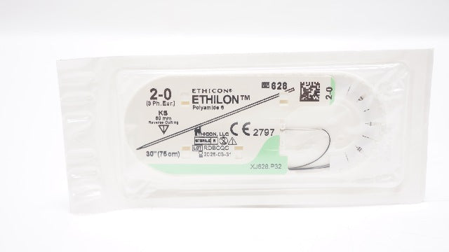 - Ethicon 628 2-0 Ethilon Stre KS 60 mm Straight Reverse Cutting, 30 inch
