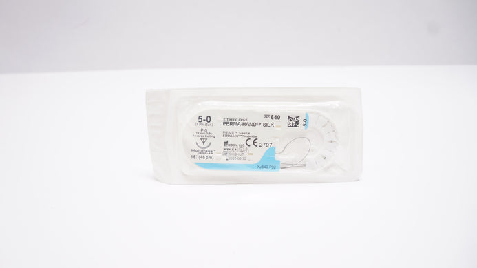 - Ethicon 640 5-0 PERMA-HAND SILK, P-3, 13mm 3/8c, Reverse Cutting, 18inch