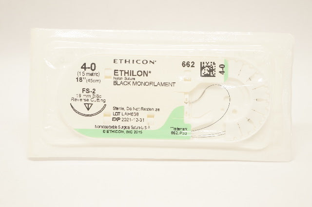 - Ethicon 662 4-0 ETHILON, Nylon Stre, FS-2, 19mm 3/8c Reverse Cutting, 18inch (x)