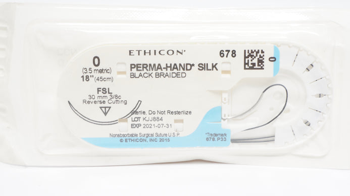 Ethicon 678 0 PERMA-HAND SILK Stre FSL 30mm 3/8c Reverse Cutting, 18inch (x)