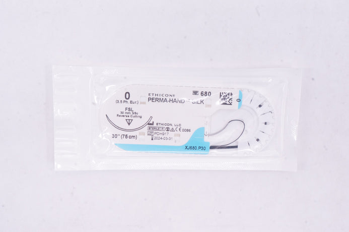 - Ethicon 680 0 Perma-Hand Silk FSL 30mm 3/8c Reverse Cutting, 30inch