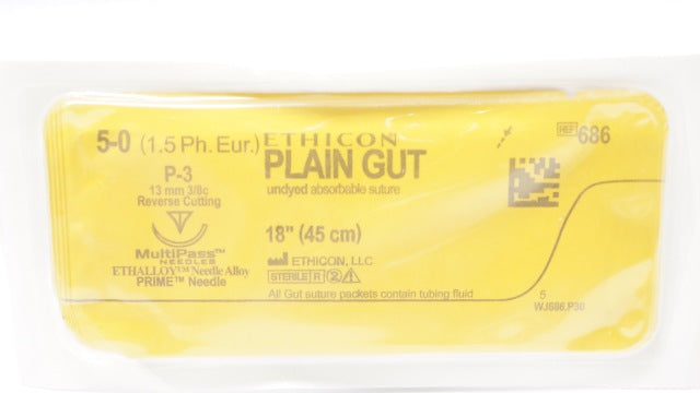 - Ethicon 686 5-0 Plain Gut P-3 13mm 3/8c Absorbable Surgical Stre18inch (x)