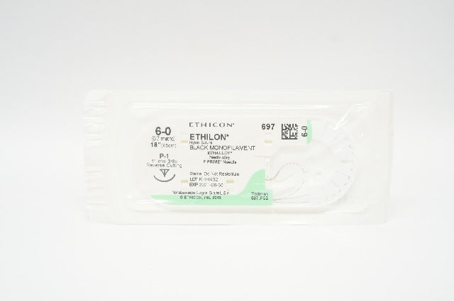 - Ethicon 697 Ethilon Nylon Stre, P-1 11mm 3/8c Reverse Cutting 18inch (x)