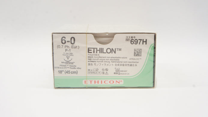 - Ethicon 697H 6-0 Ethilon Black 18inch P-1 11mm Reverse Cutting (x) - Box of 36