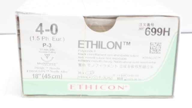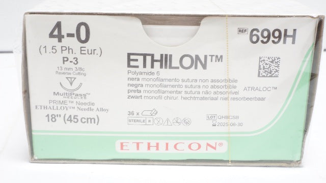 - Ethicon 699H 4-0 Ethilon Stre P-3 13mm 3/8c Reverse Cutting 18in - Box of 36(x)