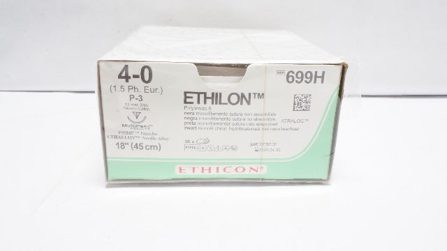 - Ethicon 699H 4-0 Ethilon Stre P-3 13mm 3/8c Reverse Cutting 18in - Box of 36(x)
