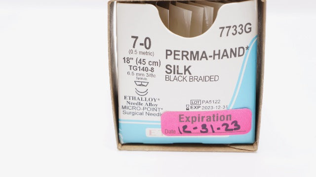- Ethicon 7733G 7-0 PERMA-HAND TG140-8, 6.5mm 3/8c Spatula,18in (x) - Box of 11