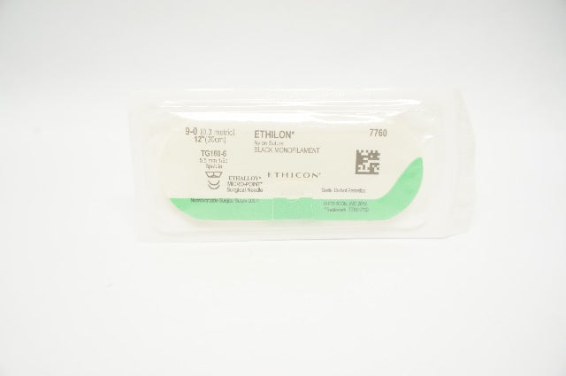 - Ethicon 7760 9-0 ETHILON Nylon Stre TG160-6 5.5mm 1/2c Spatula 12inch