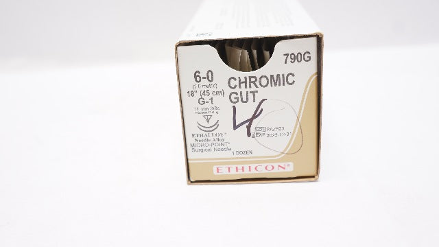 - Ethicon 790G 6-0 CHROMIC GUT G-1 11mm 3/8c 18In - Box of 11