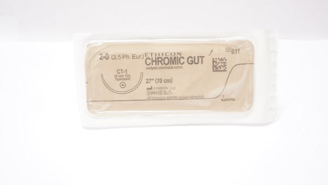 - Ethicon 811 2-0 CHROMIC GUT Absorbable Stre CT-1 36mm 1/2c Taperpoint, 27inch(x)