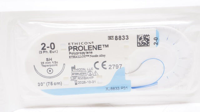 - Ethicon 8411 2-0 PROLENE Polypropylene Stre CT-2 26mm 1/2c Taperpoint 30inch (x)