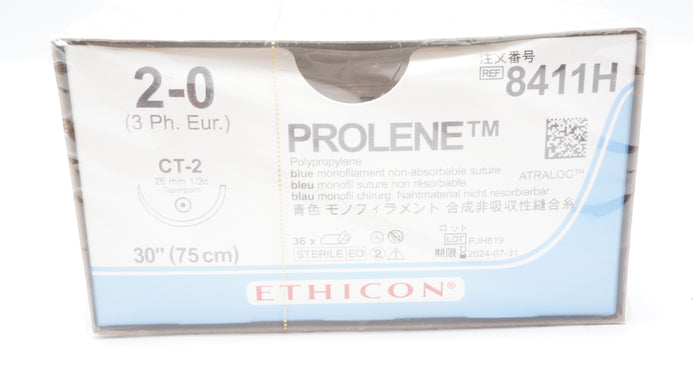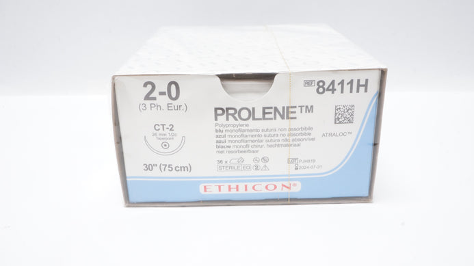 Ethicon 8411H 2-0 Prolene  Stre CT-2 26mm 1/2c Taperpoint 30in.