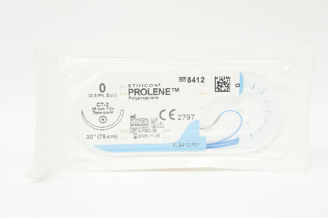 - Ethicon 8412 0 PROLENE Polypropylene Stre CT-2 26mm 1/2c Taper 30 inch