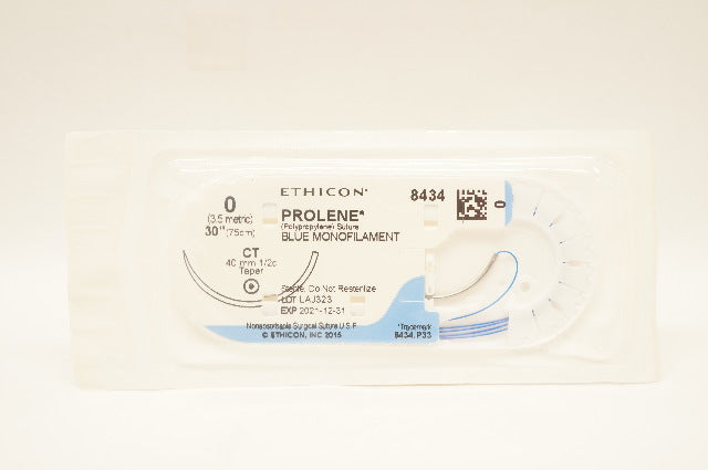 - Ethicon 8434 0 Blue Monofilament CT 40mm 1/2c Taper, 30inch (x)