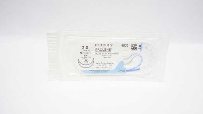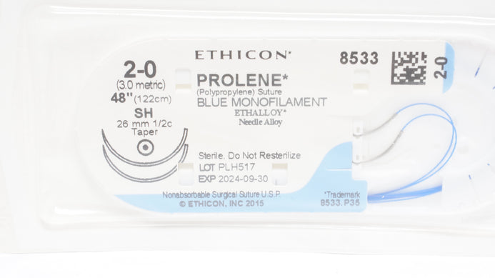 - Ethicon 8533 2-0 PROLENE Polypropylene Stre SH 26mm 1/2c Taper, 48inch (x)