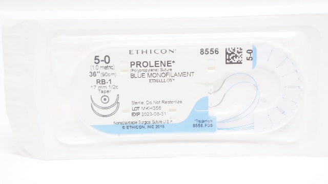 - Ethicon 8556 5-0 PROLENE Stre RB-1 17mm 1/2c Taper 36 inch (x)