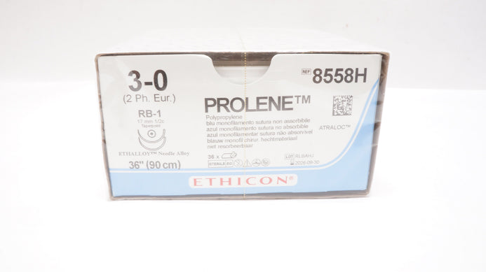 Ethicon 8558H 3-0 PROLENE Stre RB-1 17mm 1/2c Taper, 36inch - Box of 36