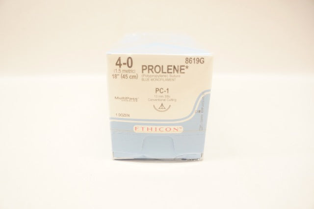 - Ethicon 8619G 4-0 PROLENE PS-1, 13mm 3/8c Conventional Cutting 18in(x)-Box of 12