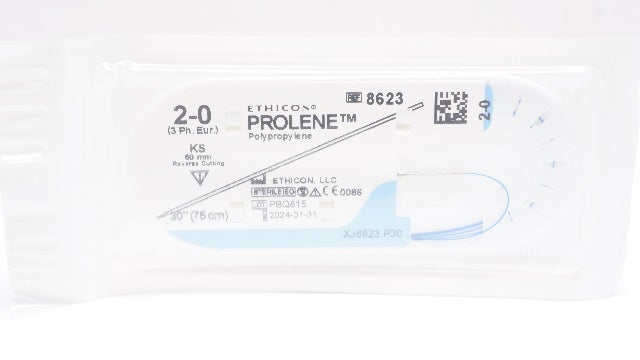- Ethicon 8623 2-0 PROLENE Polypropylene Stre KS 60mm Reverse Cutting, 30inch (x)
