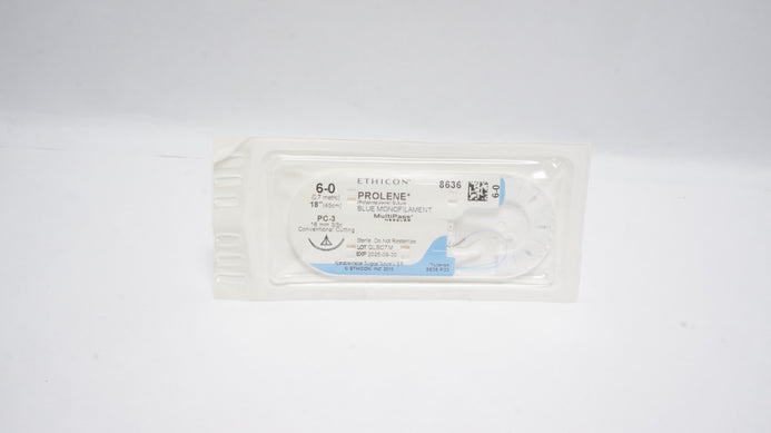 Ethicon 8636 6-0 PROLENE Polypropylene Suture Blue Monofilament PC-3 16mm 3/8c Conventional Cutting 18inch