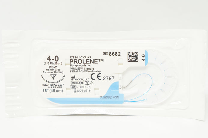 - Ethicon 8682 4-0 Prolene Polypropylene PS-2 Reverse Cutting 19mm 3/8c, 18inch