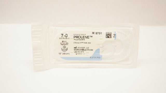 - Ethicon 8701 7-0 PROLENE, BV-1,Blue Monofilament 9.3mm 3/8c Taper, 18inch