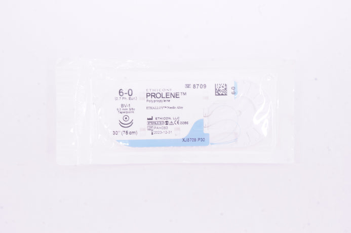- Ethicon 8709 6-0 PROLENE Polypropylene Stre BV-1 9.3mm 3/8c Taperpoint 30inch(x)