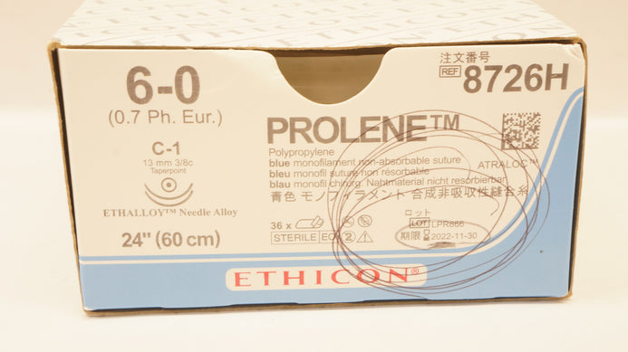 - Ethicon 8726H 6-0 Prolene Stre C-1 13mm 3/8c Taperpoint, 24inch - Box of 30